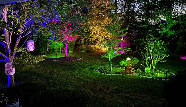 This project is located in the garden of a hillside villa in California, designed to create a vibrant and artistic outdoor lighting experience. RGB landscape spotlights were used to visually enhance the natural plants, with adjustable multi-color lighting that gives each tree and shrub a unique tone. Together, they form an immersive nighttime garden atmosphere.